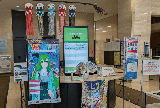 通常の案内もスムーズに対応して もらって助かります。 会話での対応なので、わかりやすいと評判です。 また、仙台七夕まつりの案内も対応してもらい、キャラクターや背景の雰囲気もあって窓口が華やかになりました。